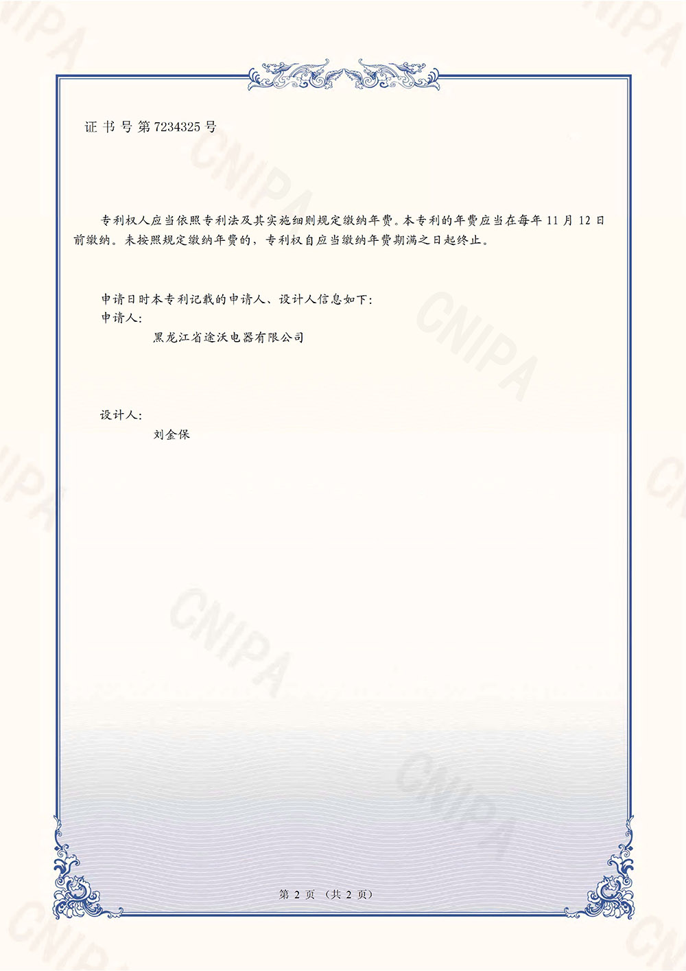 即热式电热水器-专利证书